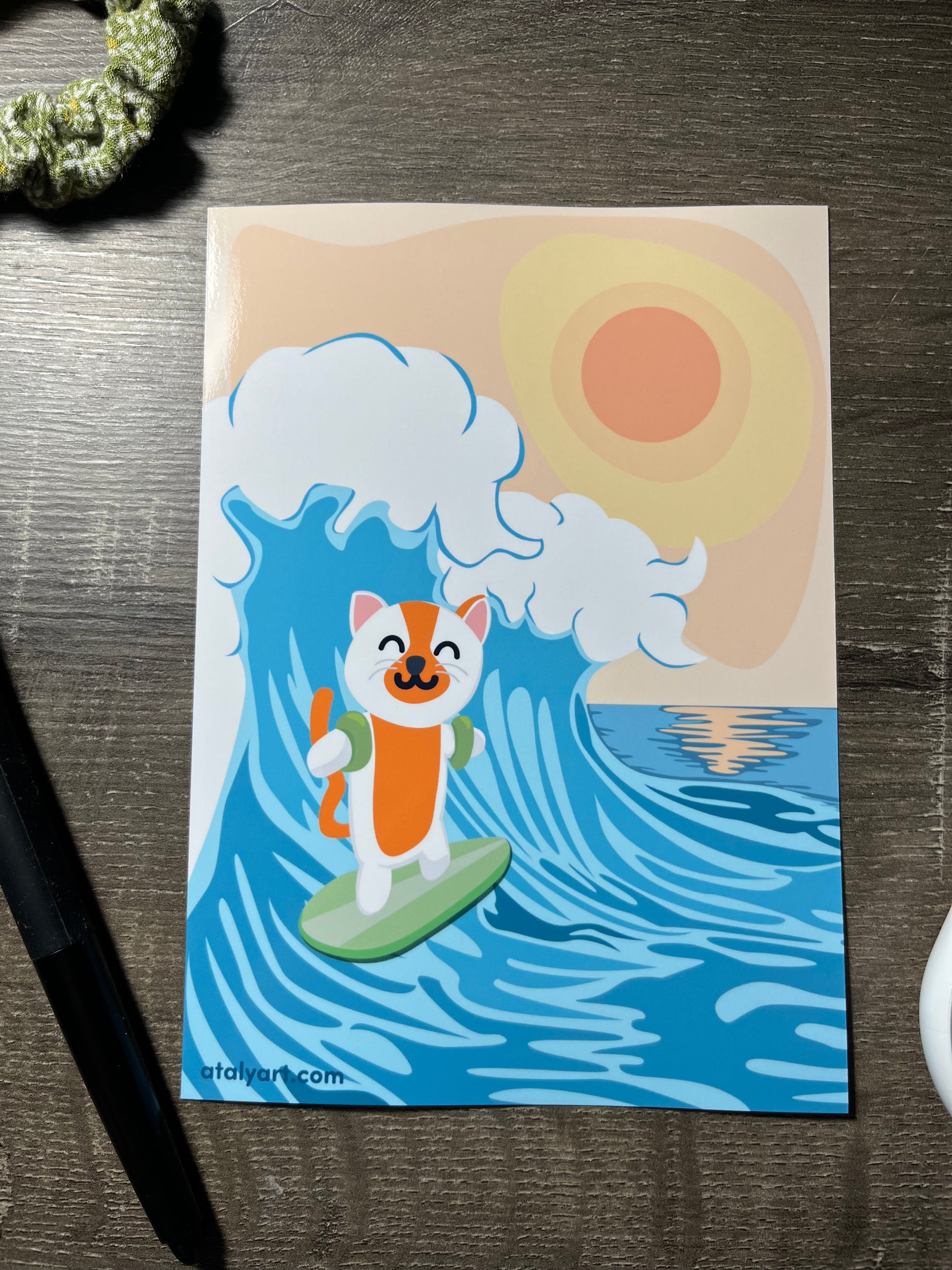 "Meow-llibu Surfer" – 5x7 Glossy Art Print